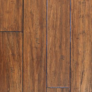 Solid strand woven bamboo flooring that has the warmth and style of an original or recycled, native hardwood floor. Dark coffee colour of rich coffee tones similar to Blackbean or Blackwood. Especially hand-crafted to create a vintage appearance, the scraped, distressed surface has chisel marks and indentations that have been stained black to give it character. The edges between the boards are darkened to create a visual thickness and time worn authenticity.